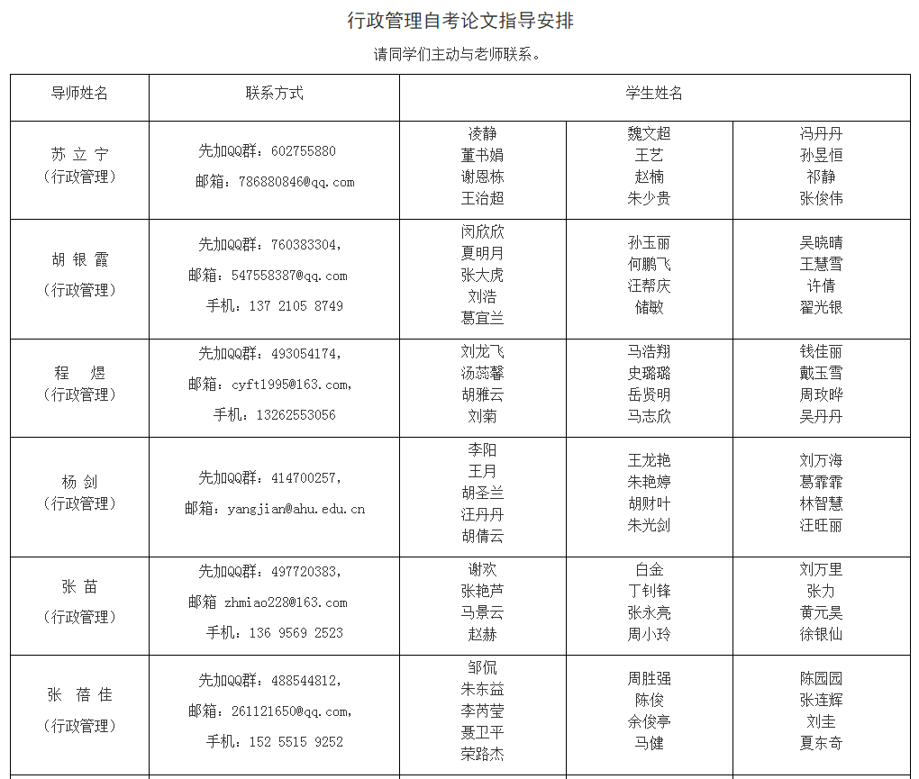 现将自考行政管理、英语、日语、经济学、财务管理专业论文指导老师联系方式公布如下,请已在网上报名2023年(上)上述五个自考专业论文答辩且交费成功的自考生查阅并主动与导师联系。